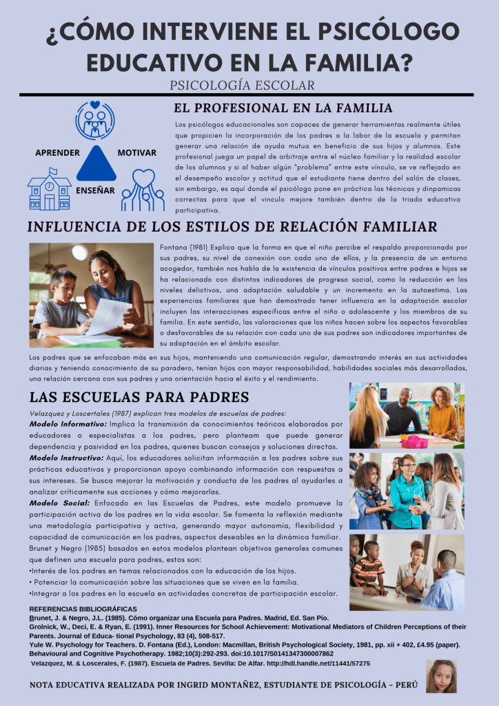 2 Jan 2024 ¿CÓMO INTERVIENE EL PSICÓLOGO EDUCATIVO EN LA FAMILIA? Share this: Share on X (Opens in new window) X Share on Facebook (Opens in new window) Facebook Like Loading... Related